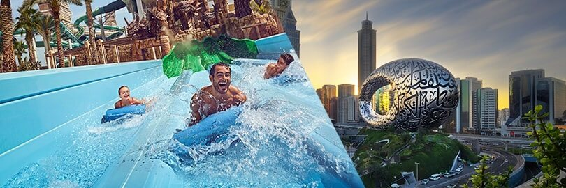 O Museu do Futuro é a mais recente joia no horizonte do Dubai, onde será transportado para o mundo daqui a 50 anos. Além disso, pode refrescar-se nos escorregas e nos passeios do Atlantis Aquaventure, o maior parque aquático do mundo.