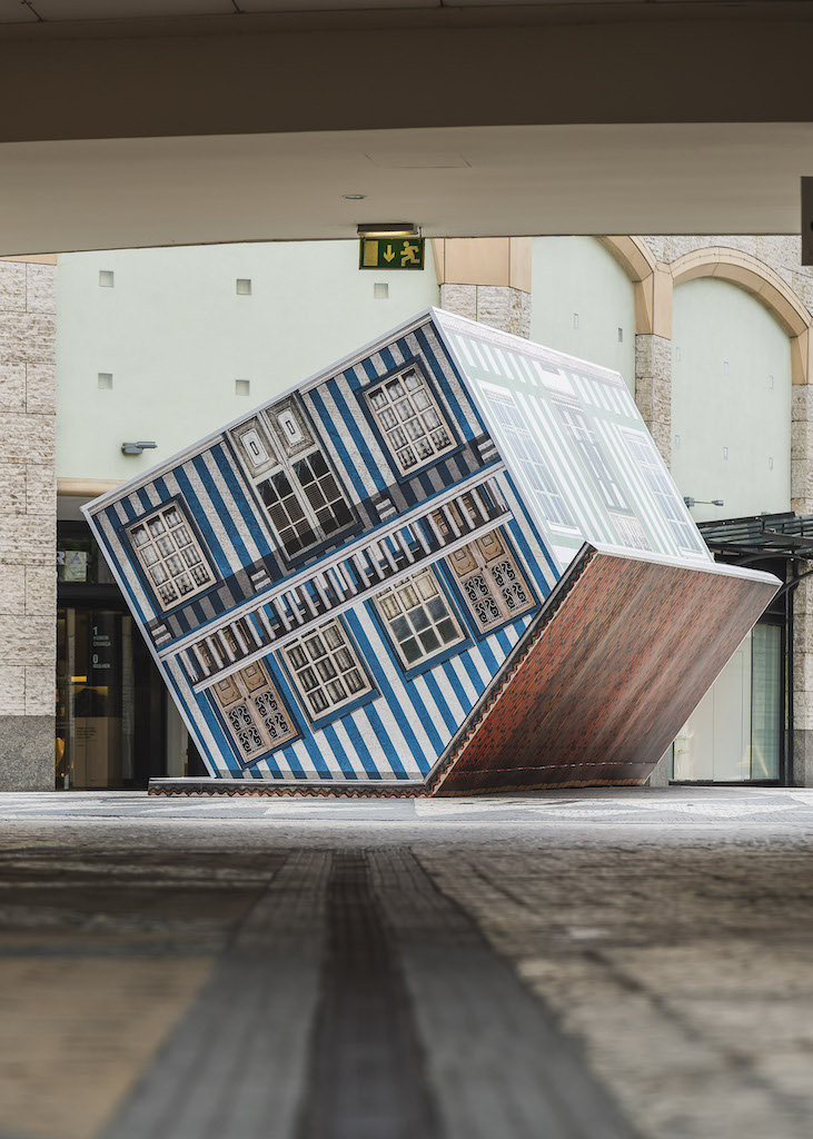 Francisco Fonseca, recorrendo às suas memórias de infância, escolheu representar os famosos Palheiros da Costa Nova, numa instalação cheia de cores vibrantes e linhas fortes.