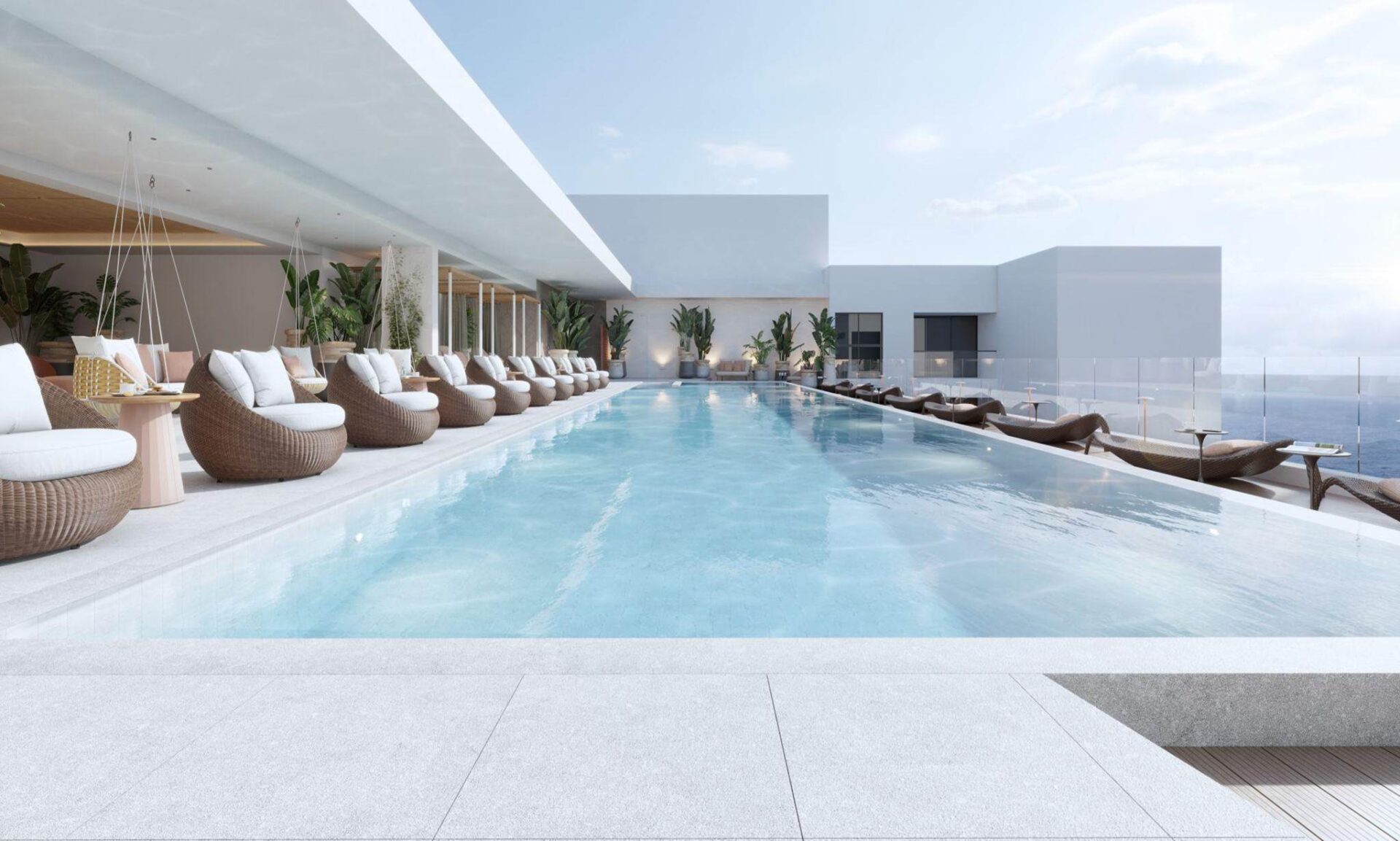 O hotel também tem uma grande área de bem-estar que inclui um spa e seis luxuosas salas de tratamento. A sala de ginástica totalmente equipada do hotel oferece vistas deslumbrantes para o mar, criando um ambiente agradável para os hóspedes manterem a sua rotina de exercícios.