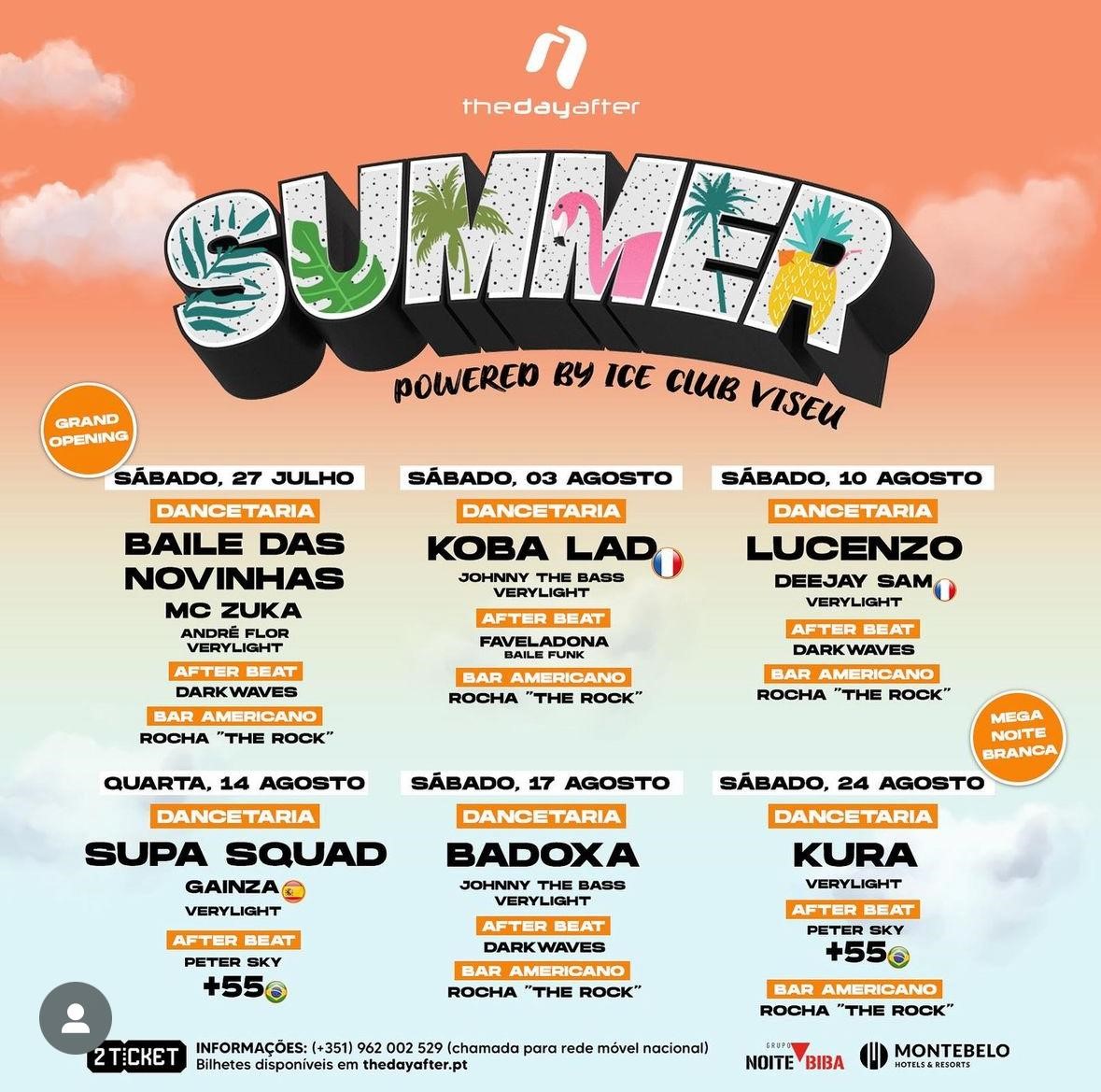 Sob o lema “SUMMER POWER BY ICE CLUB VISEU”, o The Day After volta a abrir portas para proporcionar grandes momentos aos amantes da diversão noturna, de todas as idades, sob curadoria e gestão da discoteca ICE CLUB Viseu, Grupo Noite Biba.