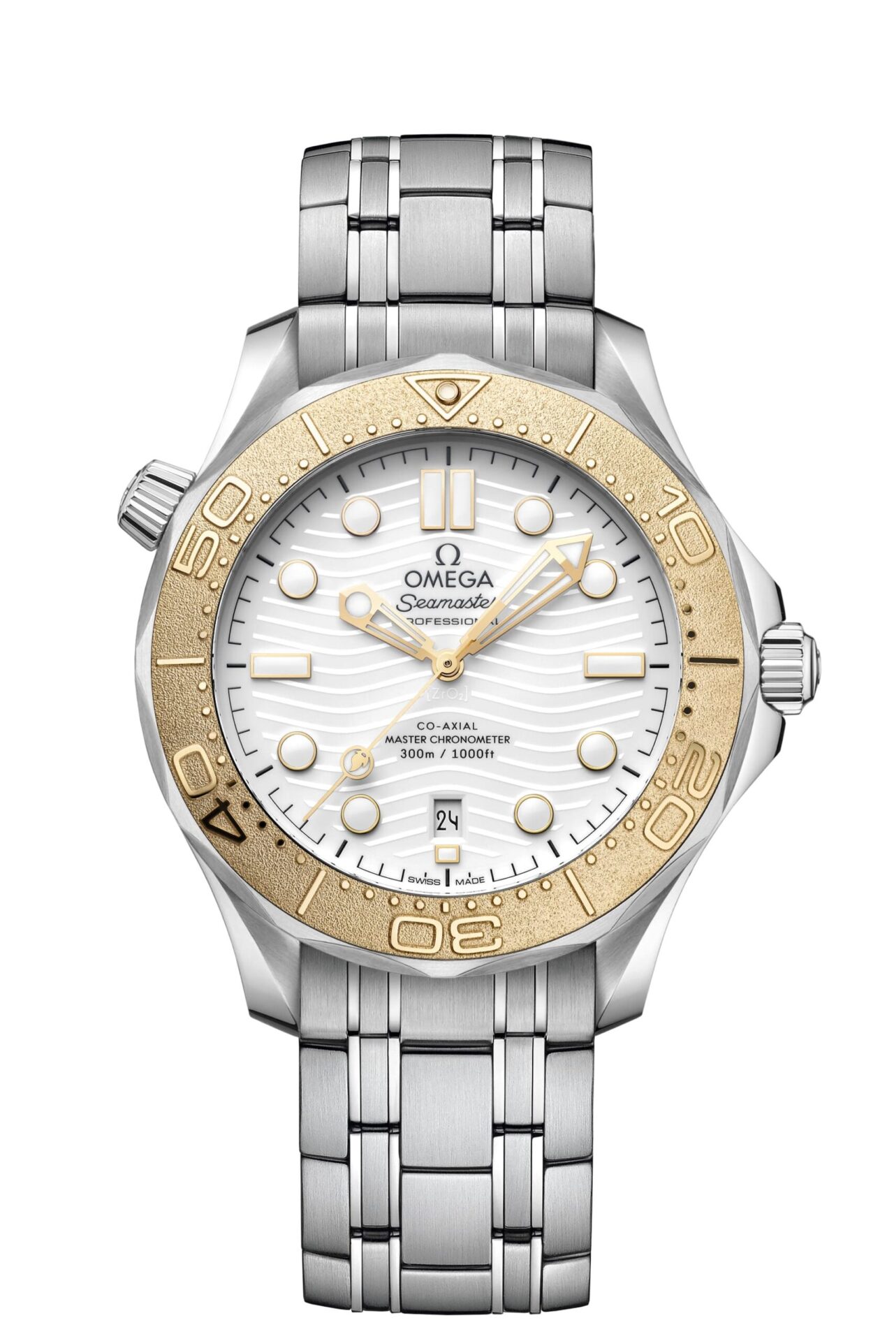 Por enquanto, o novo relógio de 42 mm estará disponível exclusivamente nas Boutiques OMEGA na cidade anfitriã, Paris. O modelo foi fabricado em aço e ouro Moonshine™ de 18K – a exclusiva liga de ouro amarelo da OMEGA, que oferece um tom mais claro e uma alta resistência ao esbatimento da cor. Como peça dedicada aos Jogos Olímpicos, o uso do ouro é uma inclusão essencial e um lembrete das muito cobiçadas medalhas pelas quais todos os atletas se esforçam. De forma mais destacada, o ouro é usado na luneta do relógio, que apresenta uma escala de mergulho estruturada a laser em relevo positivo e um único ponto de Super-LumiNova às 12 horas.