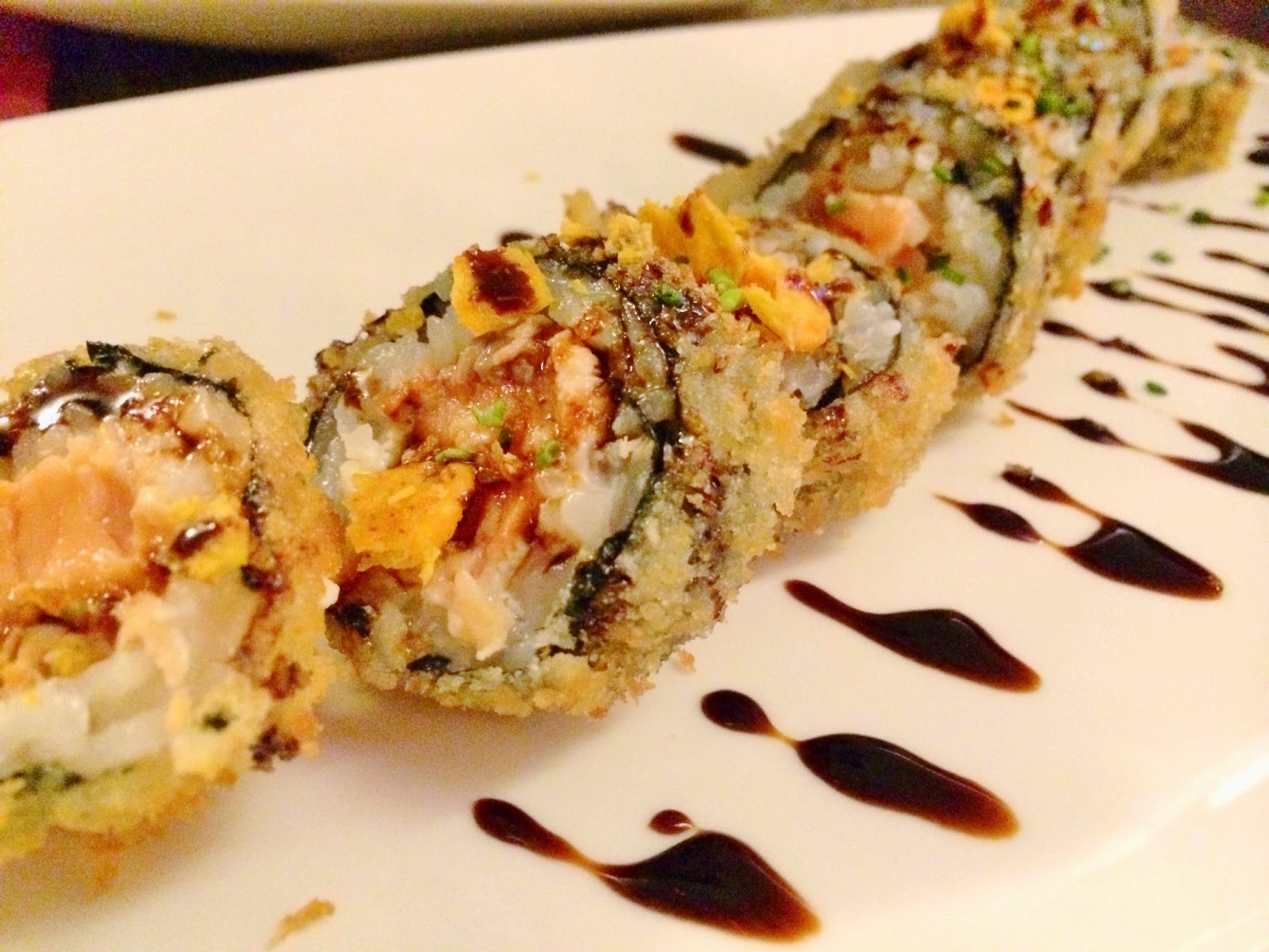 A decoração caprichada, idealizada pelo chef Clebson Vidal, o Mr. Binho, onde nem sequer falta uma instalação sobre o balcão que nos remete para a escultura área da Circunvalação, é um plus para quem deseja um lugar bonito, bem frequentado e com a vantagem de praticar uma cozinha japonesa free style — ideal para quem (ainda) não se sente totalmente confortável com a ideia de “comer peixe cru”. É o caso da versão da sobremesa Romeu e Julieta, aqui um prato, que combina salmão com goiabada e queijo Brie, servida quente numa campânula envolta em fumo de casca de laranjeira.