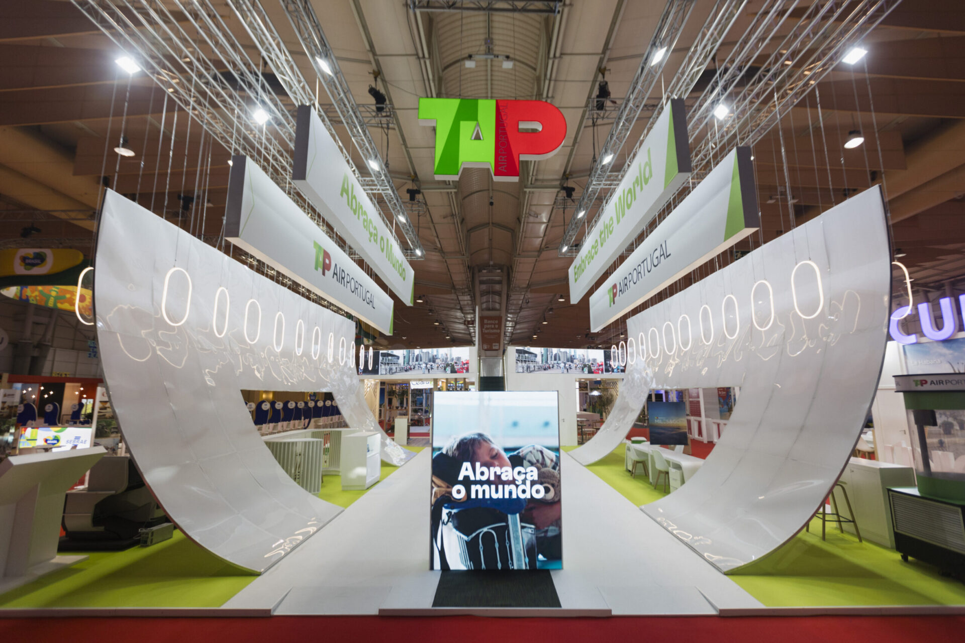 Com esta novidade a companhia reforça a sua presença como um dos mais importantes expositores no maior evento de Turismo em Portugal. O novo stand da Companhia inspira-se no novo posicionamento da TAP, “Abraçamos o mundo”.